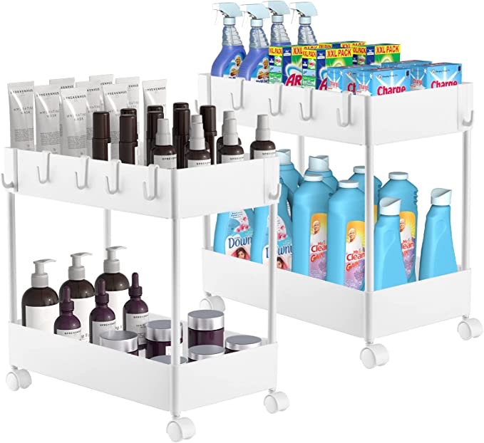 These under sink storage shelves would help SO much in those tricky spots under the sink! My kitchen and bathrooms could definitely use a couple of these! This set of two is d0wn to 24.99 (Reg 49.99) when you use D2PU9R8N at checkout! Tell us if you got it! #ad