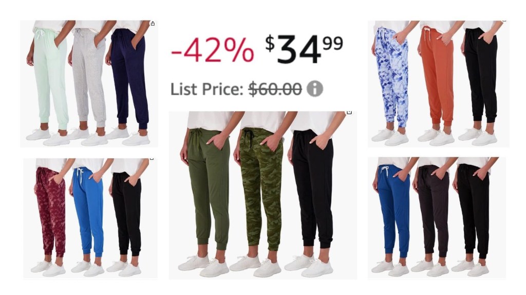 3-packs of joggers 42% off => multiple patterns & regular and plus sizes available!! Tell us if you grab. #ad 👇👇👇