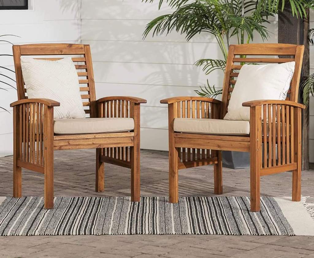 62% 0ff on Walker Edison Rendezvous Modern 2 Piece Solid Acacia Wood Slat Back Outdoor Dining Chairs for 132.90 (reg. 349.00)! I LOVE the look of these!!ππ let us know if you grab #ad l!nk in commentsπ¬