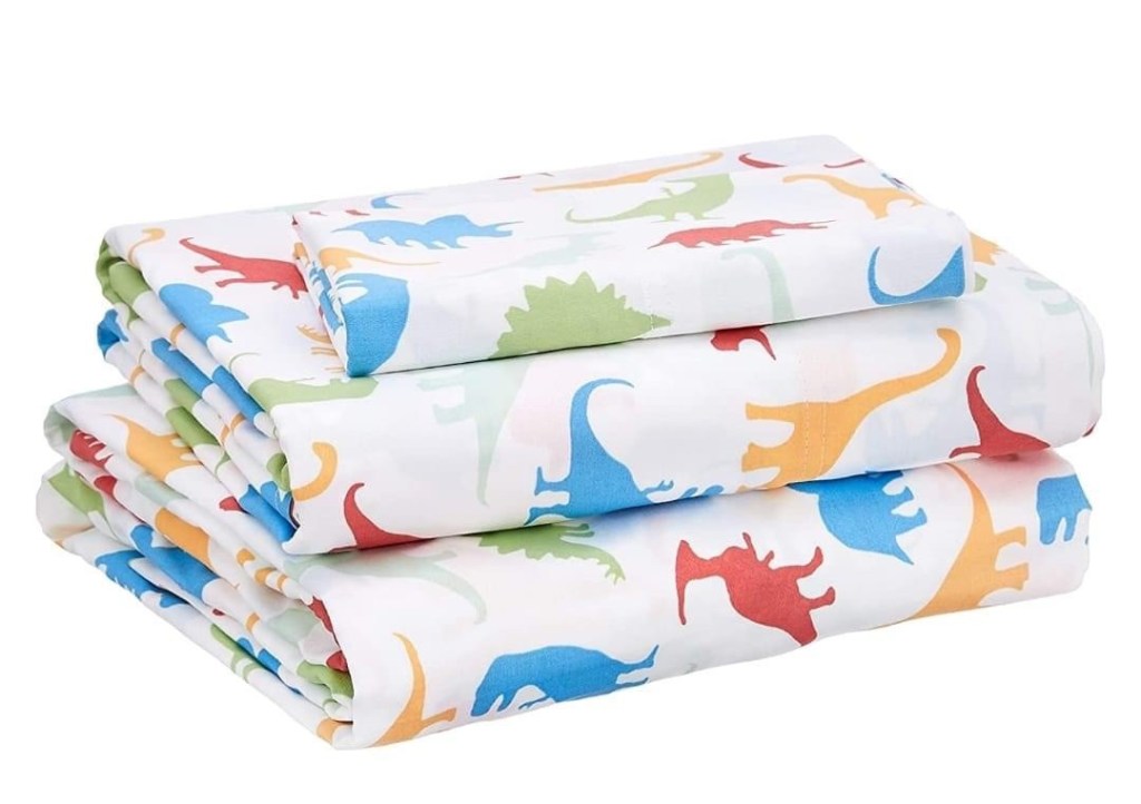 RUNNNNNN š¦ 5.64 for an Amazon Basics 3 piece twin sheet set! Includes a flat sheet, fitted sheet and pillowcase! Solid colors also available but I think this dino print is pretty darn cute! Great prce for a spare set of sheets! [ad] Did you get one? ššš