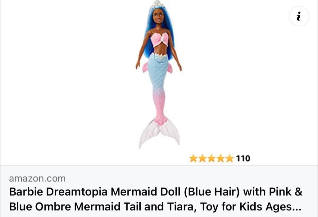 Barbie Dreamtopia Mermaid Doll stutidavewpDecember 23, 2022Amazon, Deals Post navigation PreviousNext $5 for a Barbie Dreamtopia Mermaid Doll! Limit 3! Great for the Easter basket!! #ad SHOP DEAL Share this: Share on X (Opens in new window) X Share on Facebook (Opens in new window) Facebook Like Loading...