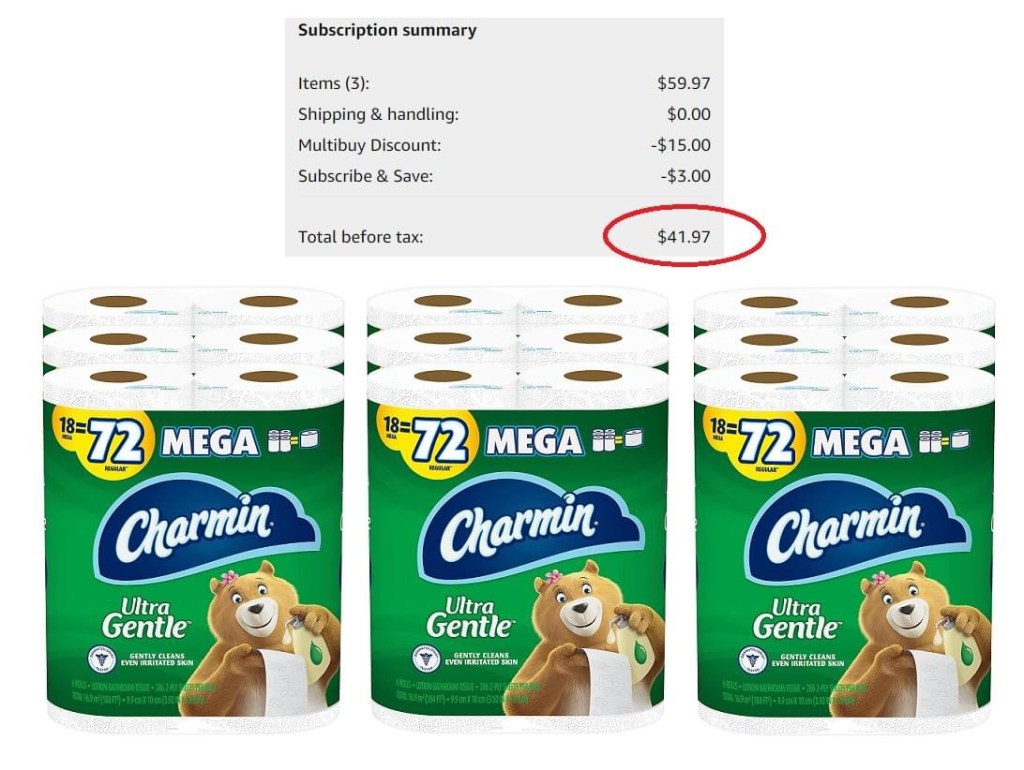 Get an extra 15 off when you buy 50 of select household items and Charmin is included too! Save even more when you opt for S&S. If you don’t need this much TP, you can mix and match with other items too. #ad 👇👇👇