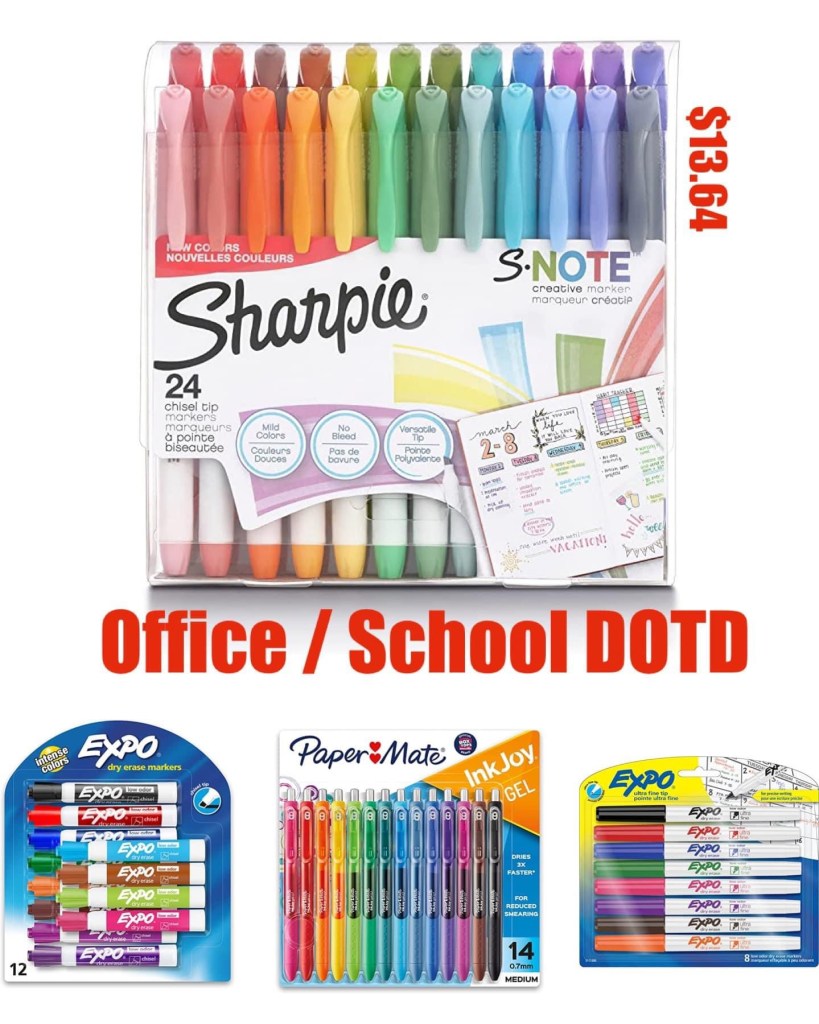 HUGE DOTD on Office and school supplies – Time to St0ck up!! UP TO 64% 0ff!!!! Including 64% 0ff SHARPIE S-Note Creative Markers, Highlighters, Assorted Colors, Chisel Tip, 24 Count for 13.64!!! Tons of options. Let me know if you grab. #ad 👇👇👇