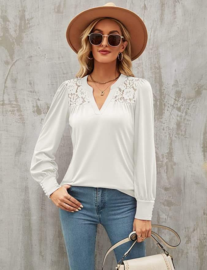 π 70% 0ff Look at all these delicate/ beautiful tops!!! Women’s V Neck Lace T Shirts w/ Bishop Sleeve with Pearl Buttons available in Tons of color options!