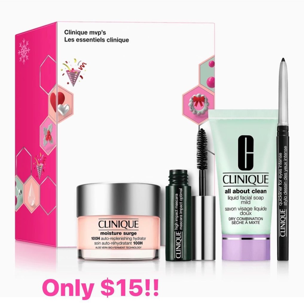 ๐ WOW!! CLINQUE MVPS set with top favorites is ONLY 15 (was 52)!!! Part of the 50% 0ff S ALE on gift sets!!! Iโm seeing some sets as low as 6.50!! ๐ฑNothing better than good skin. Are you a CLINQUE girl?? Whatโs your favorite? ๐๐๐