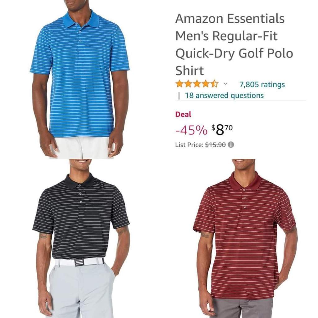 Say what?! Amazon Essentials Men’s Regular-Fit Quick-Dry Golf Polo Shirts are only 💰8.70 today!! That’s a 45% savings! 😱 6 colors available. #Ad l!nk in comments💬