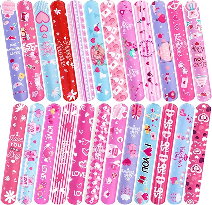Just $9.99 for a 48 Piece set of Valentines Day Slap Bracelets Wristbands! I loved these as a kid and would play with them for hours. Tons of cute designs perfect for the holiday and for your little to give to friends and classmates! #ad
