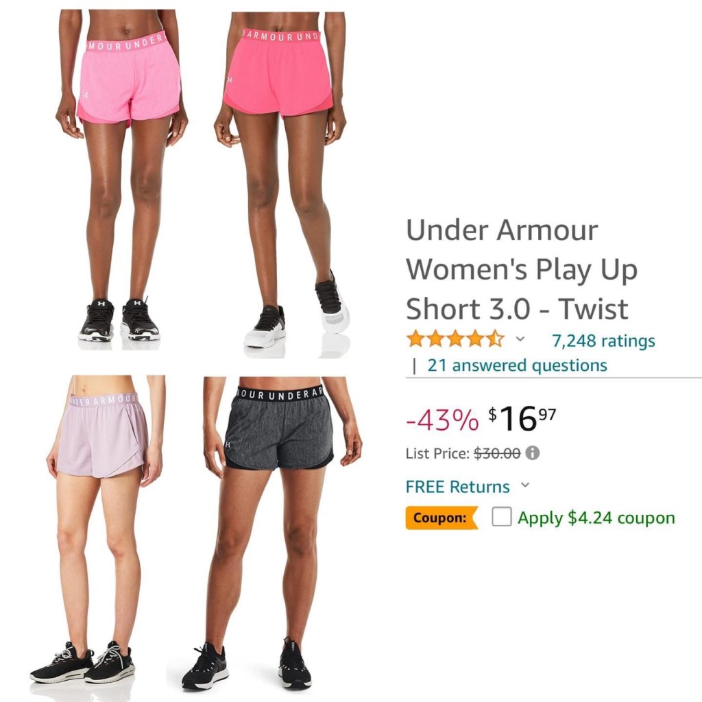 Under Armour Women’s Play Up Shorts 3.0 43% off in select colors + select sizes have a 4.24 c0upon!! 😱 Have and LOVE these shorts, so does my tween! Ad 👇👇👇