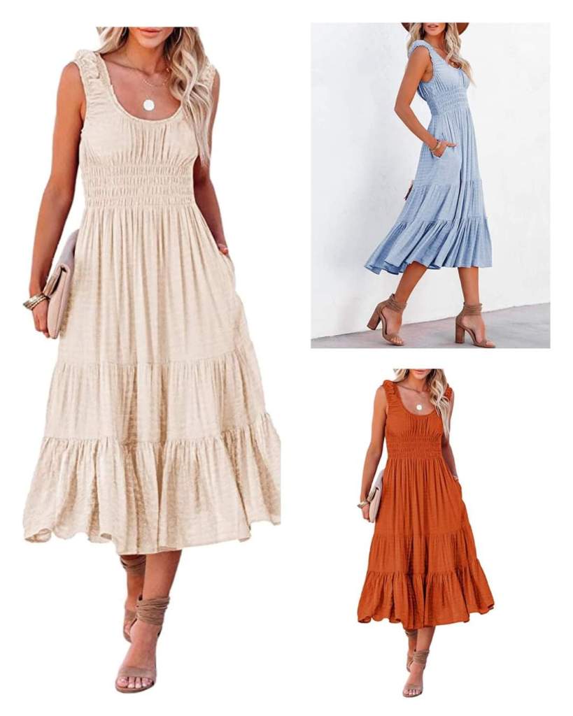 Beautiful AlvaQ Women Summer Midi Dress High Waist Casual Tiered A Line Sundress WITH POCKETS!! Lots of color options, including black!