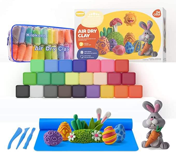 If your kids love crafts!! The cutest Easter basket filler!!! Rainy day activity!!! Kilpkonn Air Dry Clay, 24 Colors Modeling Clay #ad l!nk in comments💬