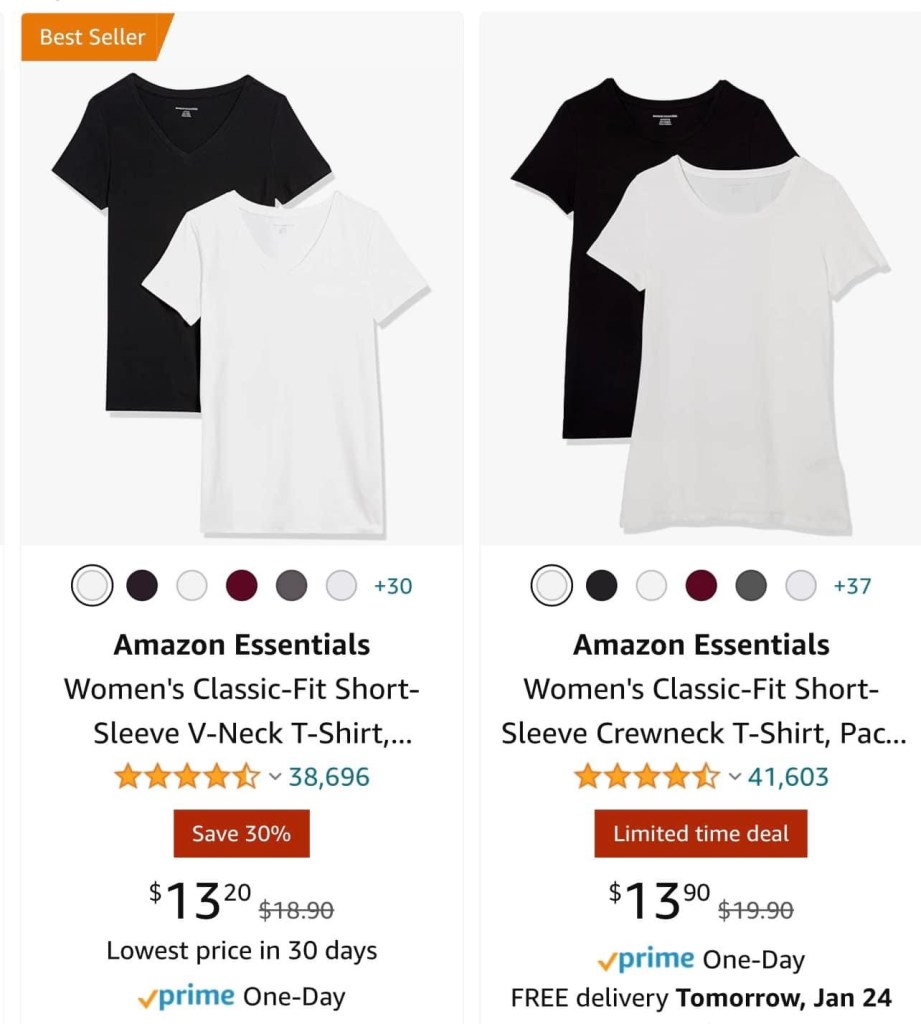The best tees ever!! Yes I said it. They are that good. Soft, not see through, not cropped or short/boxy, some stretch to them, fitted but not super tight, and 2 for 13! I have at least 10. Fit true to size. Ad Linked below 👇🏻