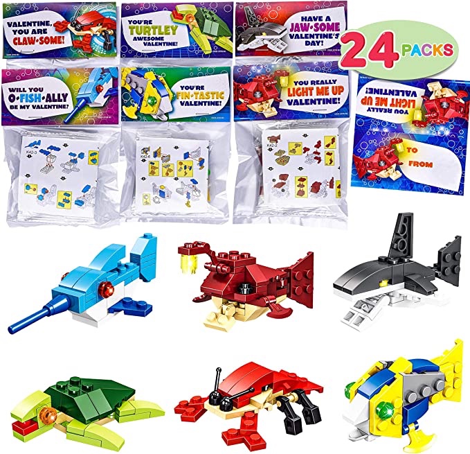 24 Packs Valentines Day Cards with Sea Animal Building Blocks on ⚡️ d e a l dropping to just 15+!! Tell us if you got it! #ad