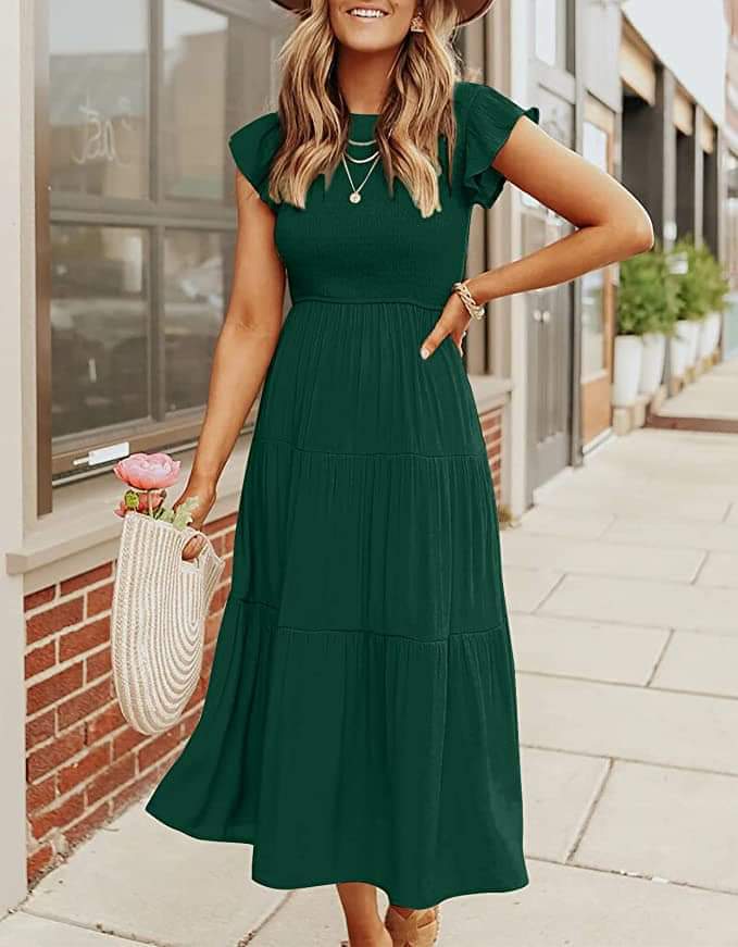 Perfect travel and multi season dress!! ZESICA Women’s Summer Casual Flutter Short Sleeve Crew Neck Smocked Elastic Waist Tiered Midi Dress #ad