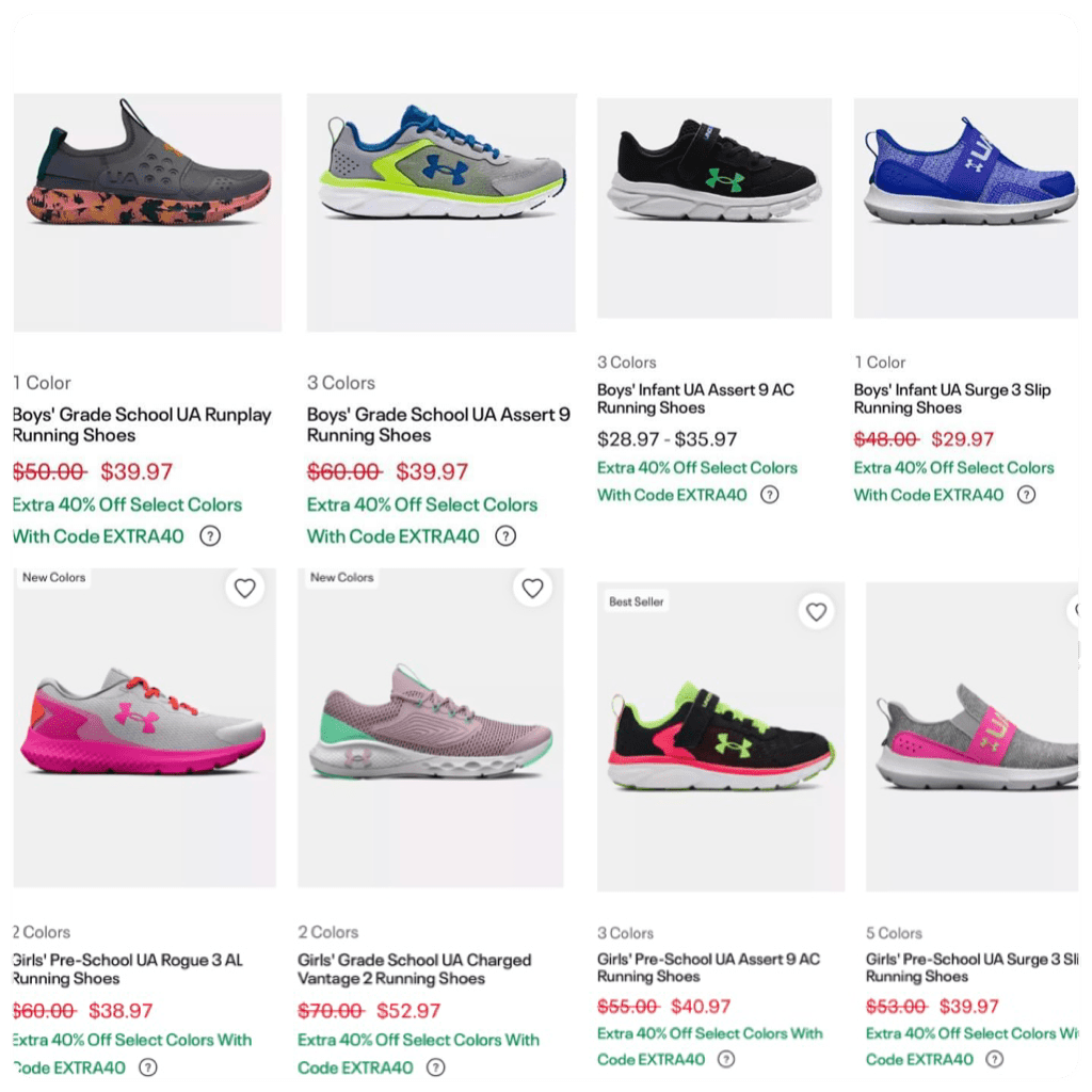 You don’t want to miss out on this Under Armour sale! These boys and girls shoes are on sale + drop another 40% off with EXTRA40 at checkout! Sign into your account for FS! Tell us if you got it!! #ad