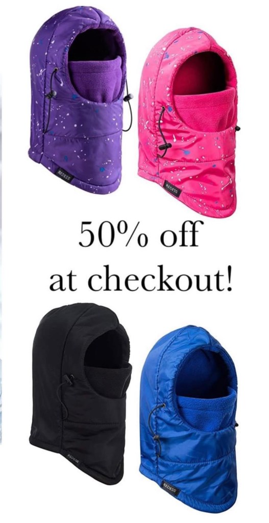 We love these fleece balaclavas— they are a NY winter necessity! Dropping to the lowest price ever, half off at checkout! We wear for sledding, hiking, ice fishing, everything outdoors. The full fleece option are a great size, they even fit me!). The print/shiny options are toddler sized. Need an adult size? We have a code for 40% off with BZHF6RMI at checkout: #ad 👇👇👇
