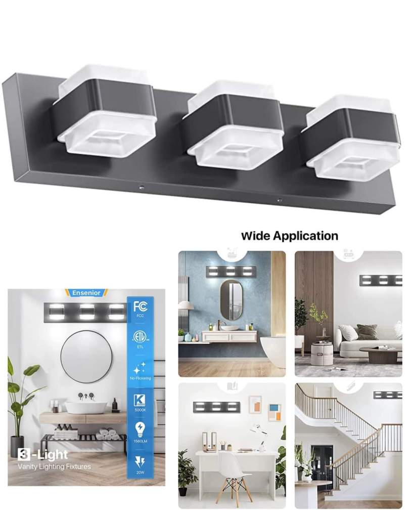 ππ Use Clickable C0upon to grab this Ensenior Bathroom Light Fixtures, Dimmable LED Vanity Lights Over Mirror, CRI 90, 5000K Daylight, Acrylic Stainless Steel, 3 Lights for Modern Vanity Lighting Fixture!!