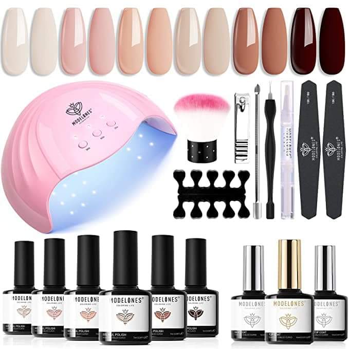Modelones Gel Nail Polish Kit With U V Light 6 Nude Neutral Nail Polish Gel Manicure Kit #ad l!nk in comments💬 💅Let me know if you grab!