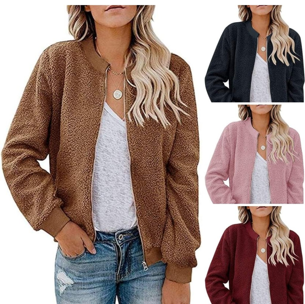 These are the cutest! MIROL Women’s Sherpa Fleece Jacket Faux Fuzzy Long Sleeve Casual Zip Up Bomber Coat!!