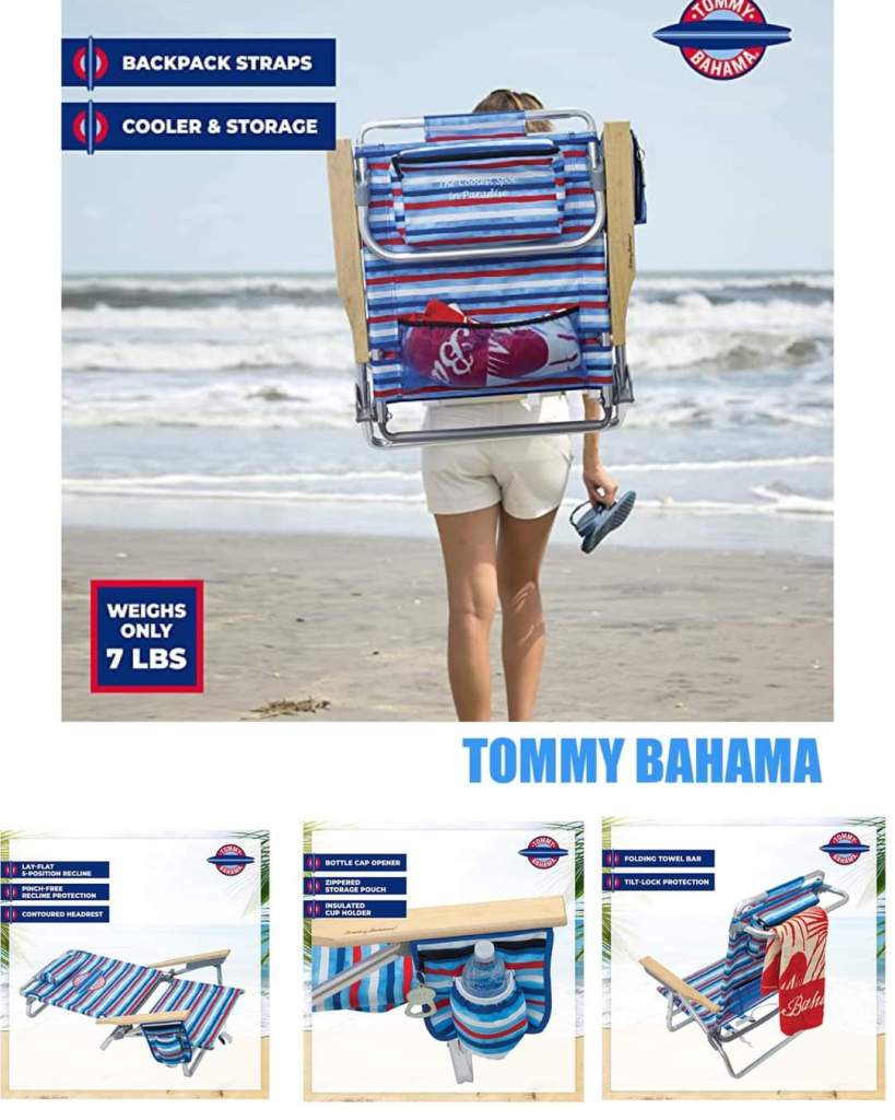 ๐๐ 42% 0ff!!!! TOMMY BAHAMA 5-Position Classic Lay Flat Folding Backpack Beach Chair, Red, White, and Blue Stripe!!! #ad let us know if you grab through our l!nk in comments๐ฌ ๐