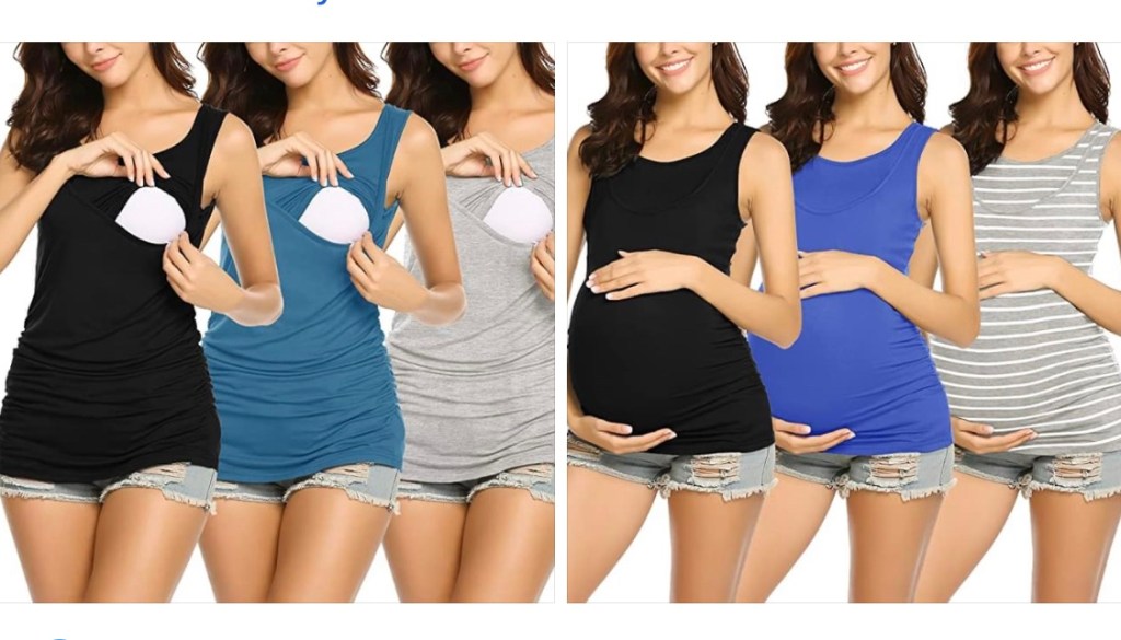 Save on a 3 pack of maternity/nursing tanks! Clip the coupon and use c0de W427J9DM at checkout. Lots more colors and some prints to choose from. The price should drop to about 9 per shirt, so around 27 for 3. Sizes S-XXL. [ad] tell us if you get it. πππ
