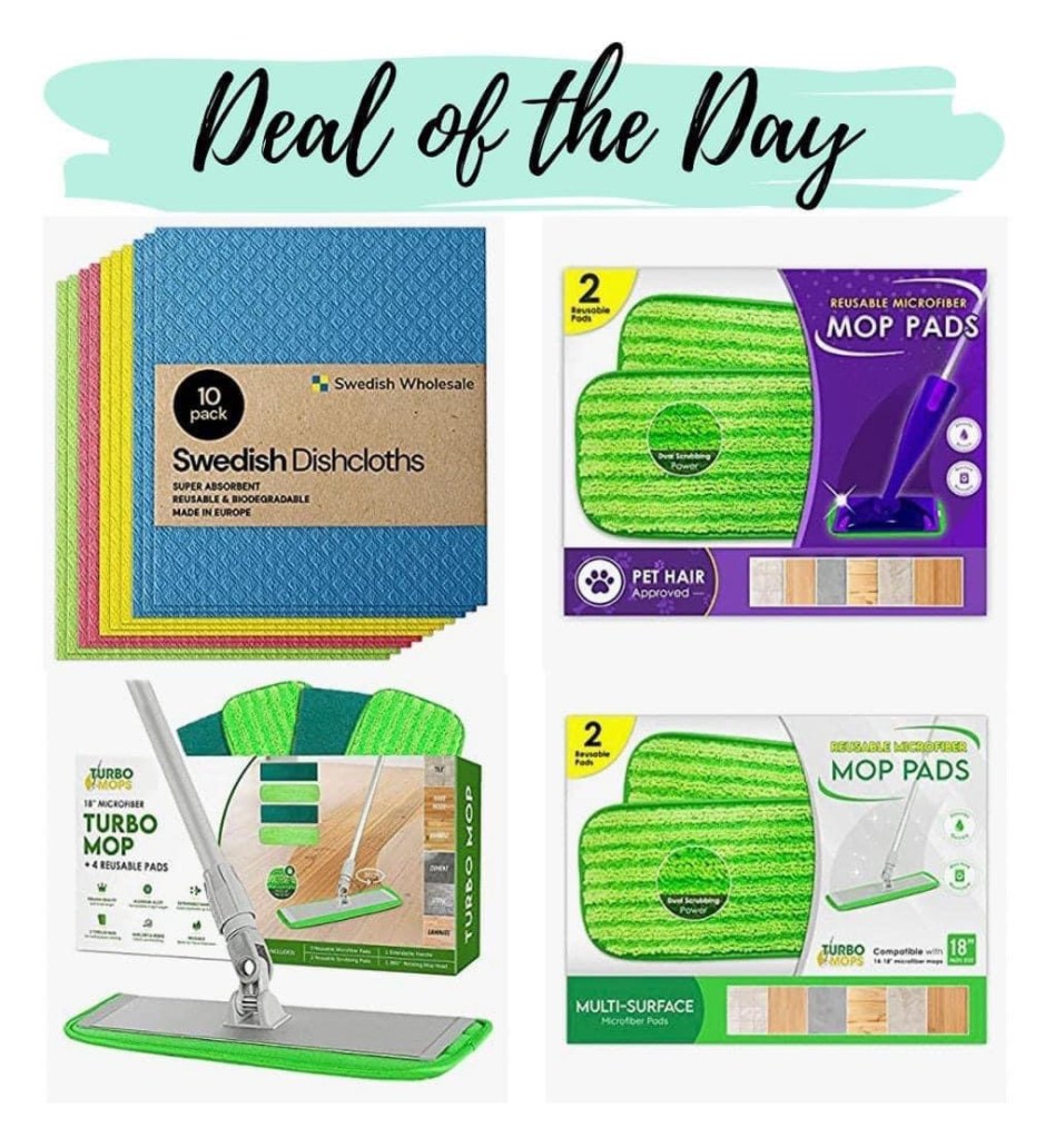 💥💥💥 Amazon’s Epic D eal of the Day!! Save on Turbo Mops Premium Microfiber Mop, pads and the Eco Swedish Dish Cloths. 🤩🤩🤩 The TEN pack of reusable Swedish cloths is one of my favorite things. I use them for everything in the kitchen, cleaning the bathroom and we even use them to clean the care interior.. After I clean with them I rinse them in the sink and dry over the faucet or sink. After a day or two they find their way to the laundry room. #ad Be sure to say if you grab. 👇👇👇