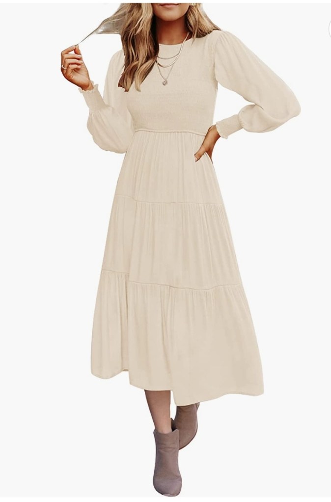 62% 0ff ⚡ Lightning Deal for this ZESICA Long Sleeve Smocked Flowy Midi Dress! Available in sizes small-XL.#ad l!nk in comments💬