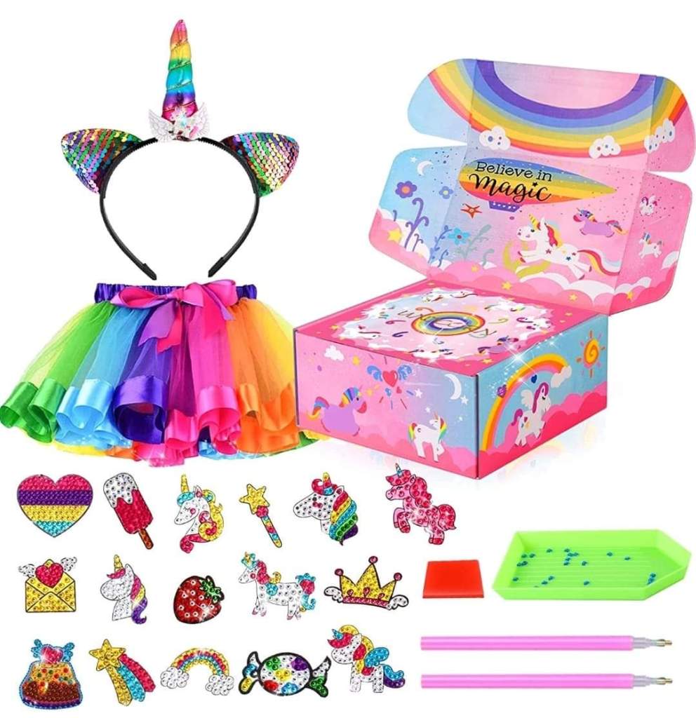 55% 0ff on this cute unicorn gift box at checkout! Includes diamond paintings, a skirt, headband and more! #ad l!nk in comments💬