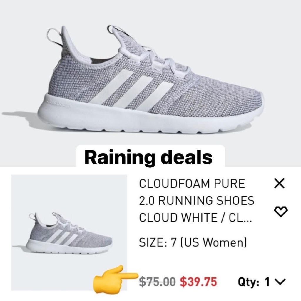 Goooo!!! Adidas Cloudfoams are dropping to 39.75 with code REWARD + f ree shipping when you use your acc0unt (itβs f ree)!!! These are seriously like walking on clouds, ridiculously comfortable!!! Ad: Please say if it works for you. This can change or end at any time!πππ