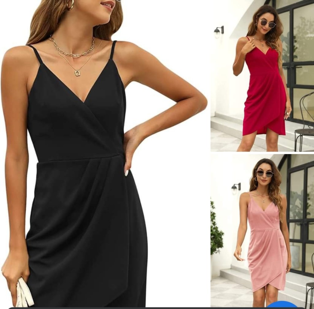 Manydress Womens Sleeveless Deep V Neck Summer Dress Spaghetti Strap Wrap Ruched Cocktail Party Mini Dresses!! Lots of color options!!