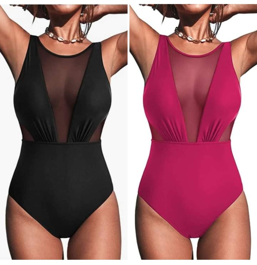 ❤️❤️ ATHMILE Women Mesh One Piece Swimsuit Tummy Control Bathing Suit Swimwear High Cut Monokini!! Clip the coup0n😍