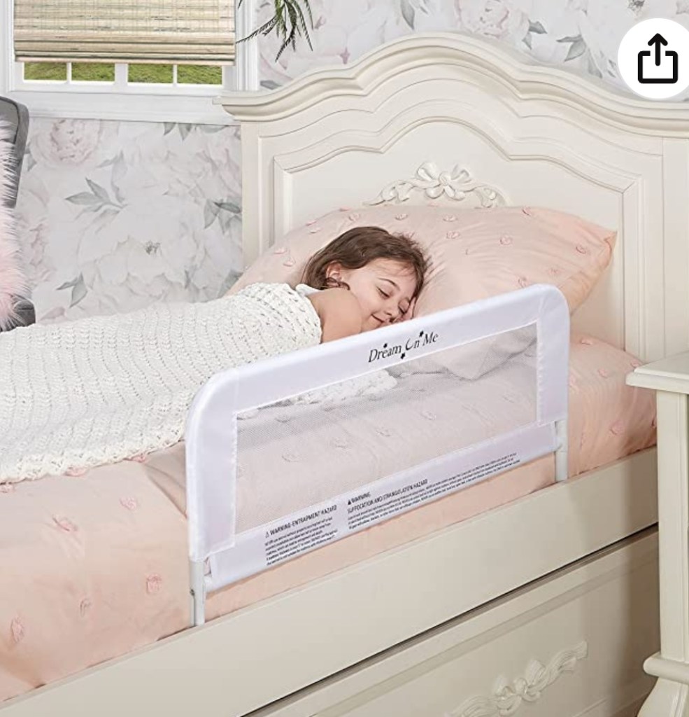 The Dream On Me Lightweight Mesh Security Adjustable Bed Rail for Toddler with Breathable Mesh Fabric in White is down to 😍💰17.93!