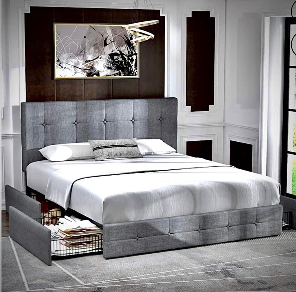 This is gorgeous #ad ππ€ This light gray upholstered bed is perfect for small spaces. The 4 built in drawers underneath can replace a dresser! Right now you can snag the queen size for just 279 (reg. 410) With F R E E shpping! #rd02202023 tell us if you snag. πππ