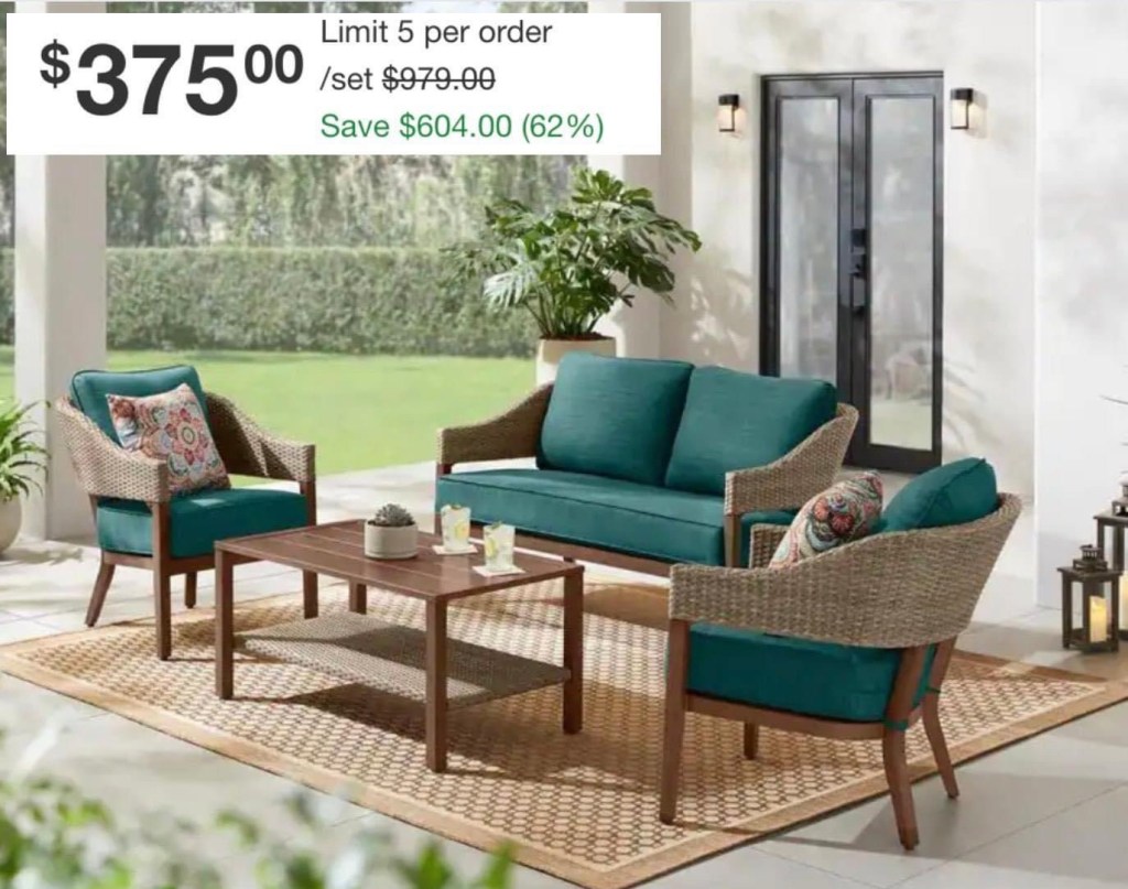 Woah! This Leighton Park 4-Piece Wicker Patio Conversation Set with CushionGuard Malachite Green Cushions is down to just $375 (reg $979!) at Home Depot!! #ad