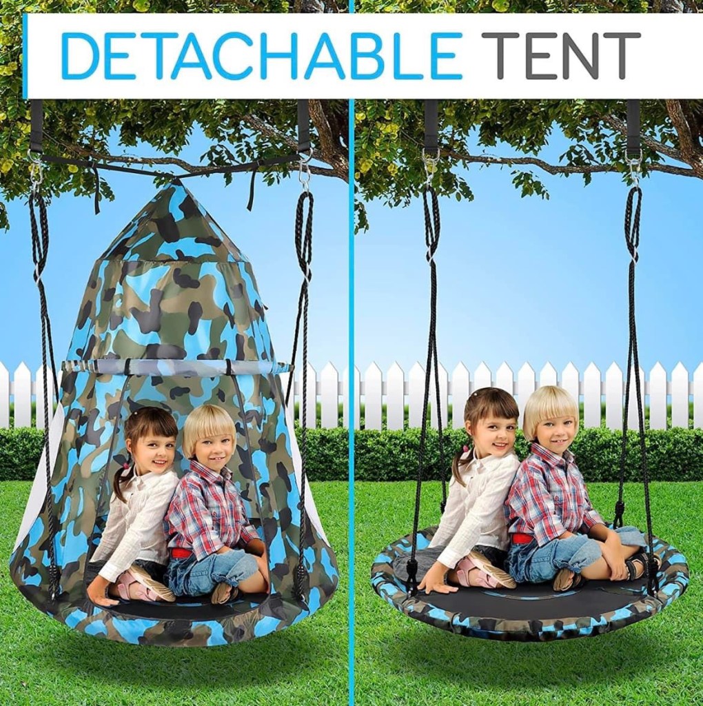 This is seriously the coolest thing! The 40” Hanging Tree Play Tent Flying Saucer is down to $40.81 (was 69.99, 42% off) in color cammo! Great for both indoor & out! #ad
