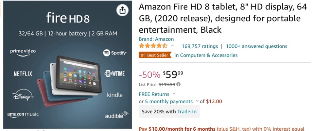 Amazon: Amazon Fire HD 8 tablet, 8″ HD display, 64 GB, (2020 release) 59.99 (120). #ad #rd02282023 be sure to say if you grab. 👇👇👇