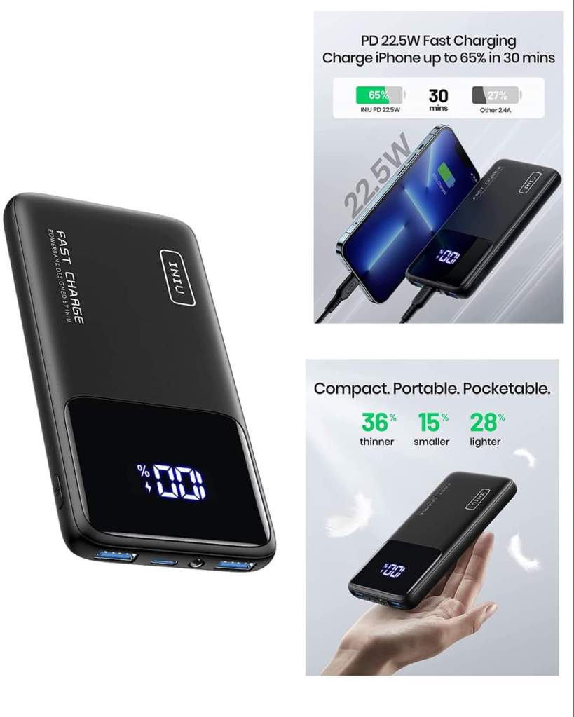 INIU Portable Charger, 22.5W 10500mAh USB C in/Out Power Bank, Fast Charging PD3.0 QC4.0 Battery Pack, clip the coup0n