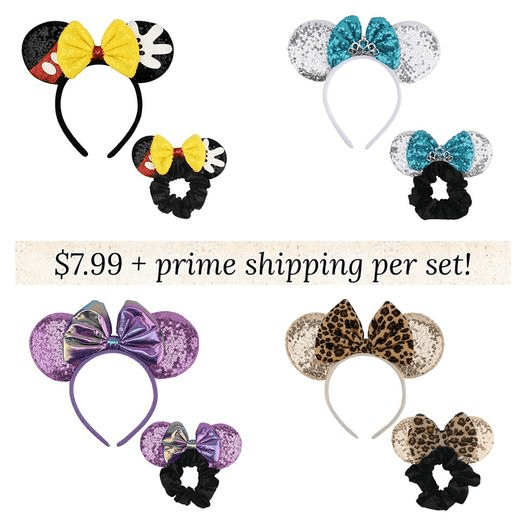 Heading to see the mouse? These sets are only $7.99 each (Reg $14) and will save you a ton of money vs buying them at Disney. And how cute is that scrunchie?! Great for dress up too! 10 styles available. #ad Tell us if you got it!
