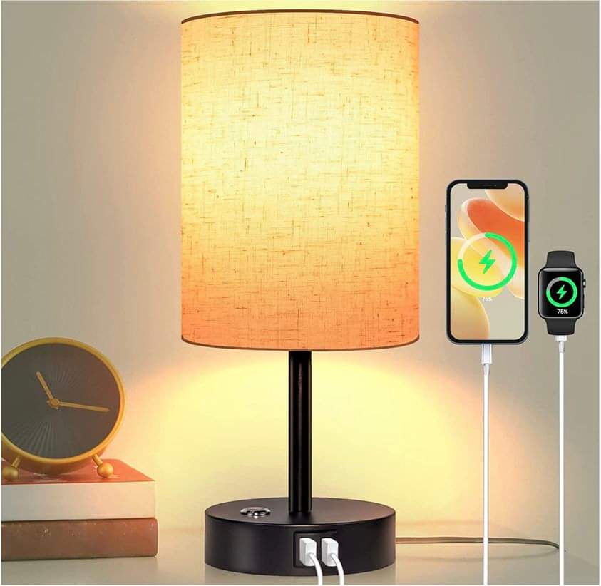 Bedside Table Lamp – Dimmable Nightstand Lamp with USB Ports