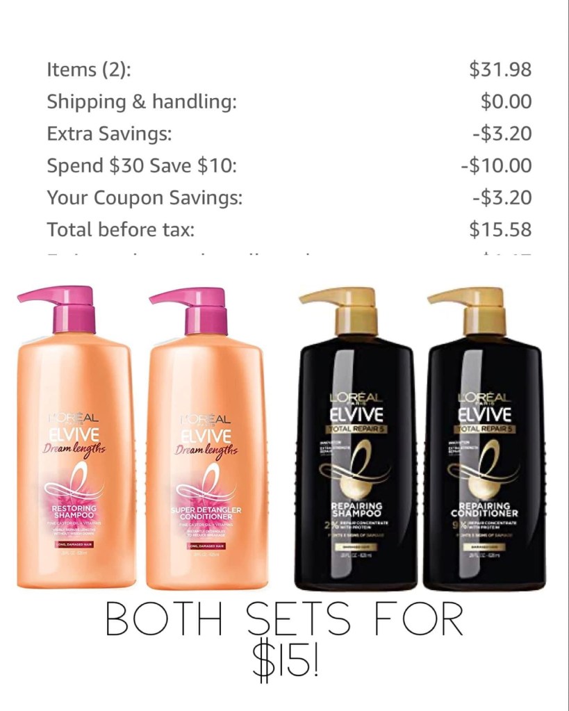Crazy!! Both of these L’Oréal Elvive sets have savings (either a clippable or automatically applied at checkout), PLUS they are apart of a save 10 off 30 promo! So you could grab both of these sets for 15!!! 😱😱 these are $