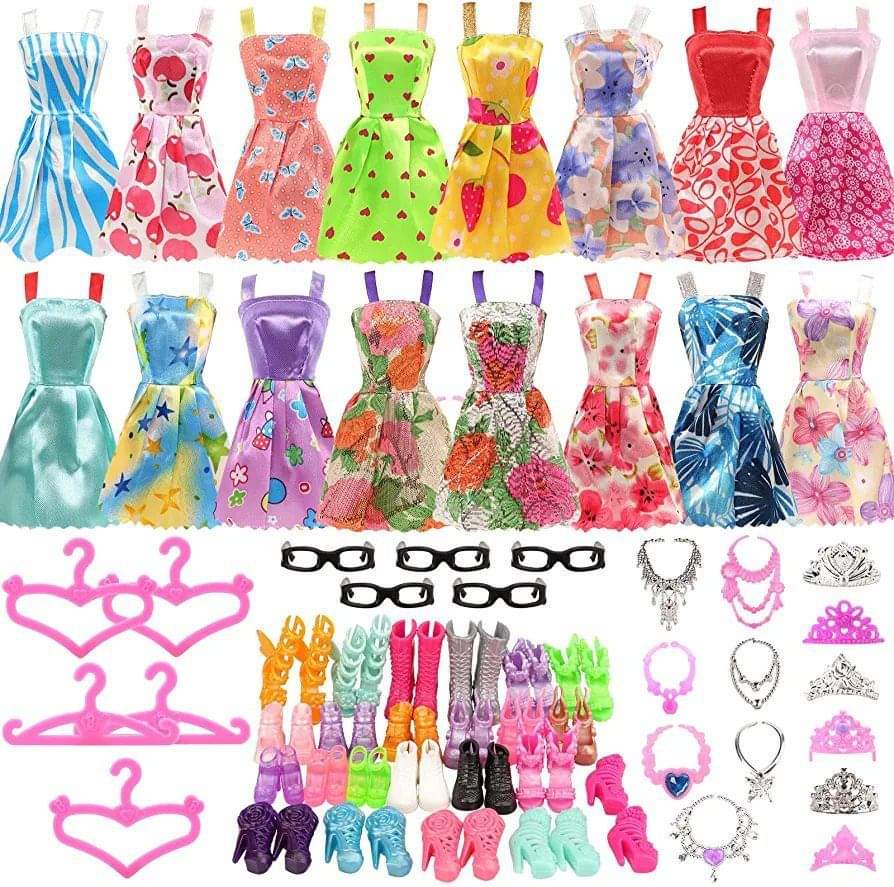 BARWA 42 pcs Doll Clothes and Accessories 10 pcs Party Dresses 32 pcs Shoes, Crown, Necklace Accessories for 11.5 inch Doll is on dr0p #ad