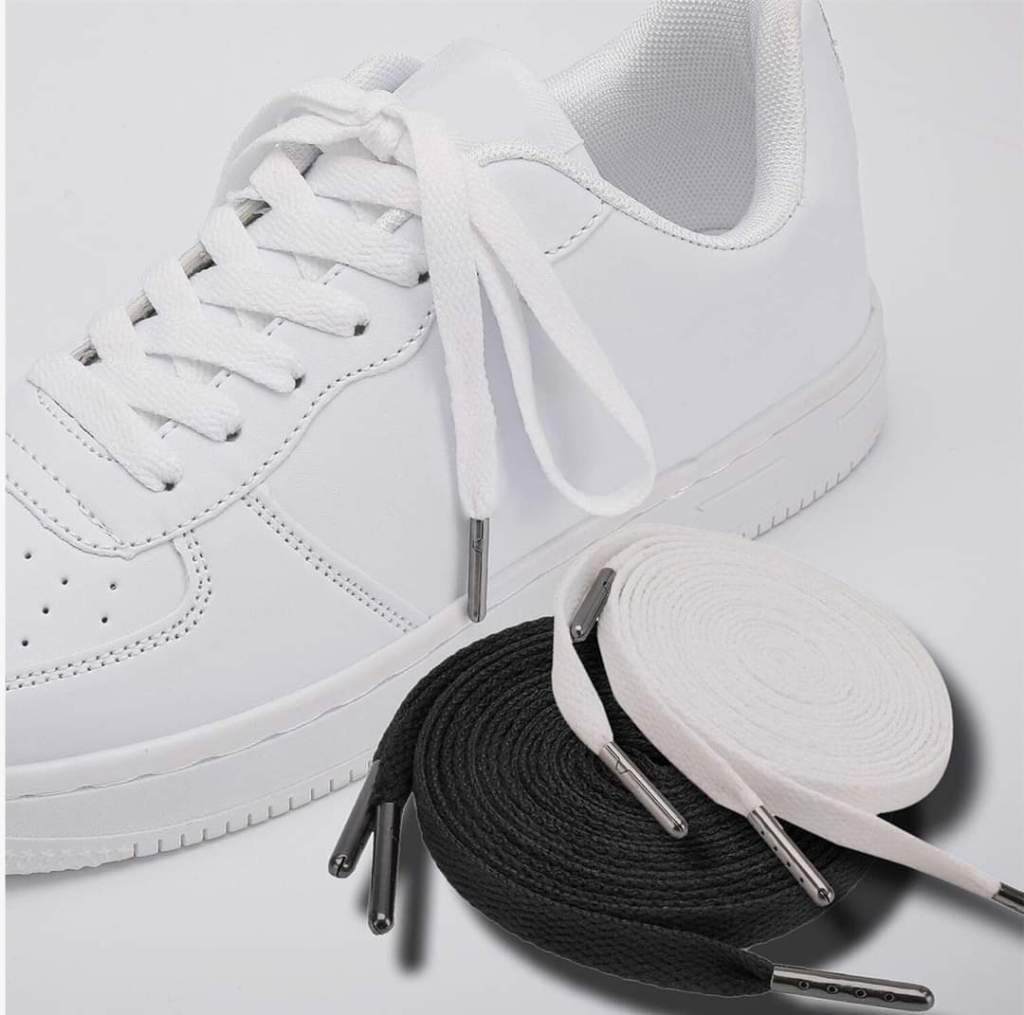 PPZHAVG [2 Pairs Flat Laces for Sneakers, Different Lengths 3 Colors 5/14″ Wide Sneakers Laces 24″-71″ White 30″