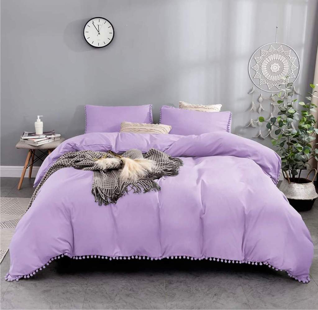 Bowavat Pom Pom Fringe Duvet Cover King Size,100% Washed Microfiber 3 Pieces Purple Duvet Cover Set,is on de@l #ad
