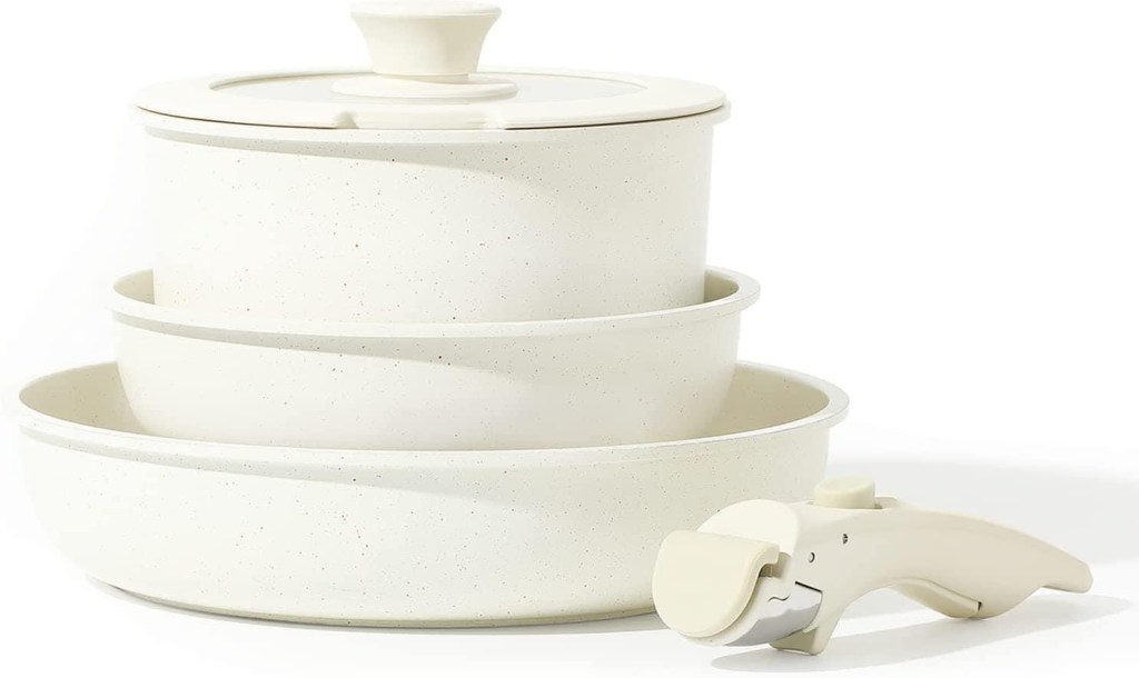 🤍🤍OMG!!! RUN! 50% 0FF!! + 💲10 C0upon!! 0NLY 39.99!! This gorgeous CAROTE Cookware Sets, Nonstick Pots and Pans Set Detachable Handle, Kitchen Induction Cookware Sets with Removable Handle for easy storage too! Stackable Cookware for Campers too! Oven Safe (White 5 PCS)!!! Beautiful and quality! #ad #rd03312023 Please say if you grab one 👇👇👇