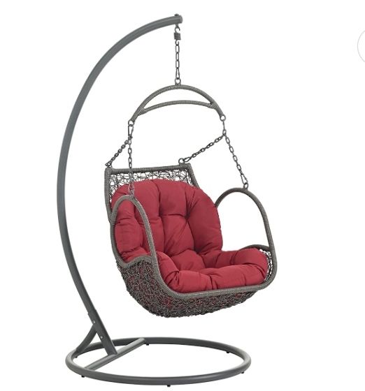 Modway Arbor Wicker Rattan Outdoor Patio Porch Lounge Hanging Swing Chair Set with Stand in Red is on pr!ce drōp #ad