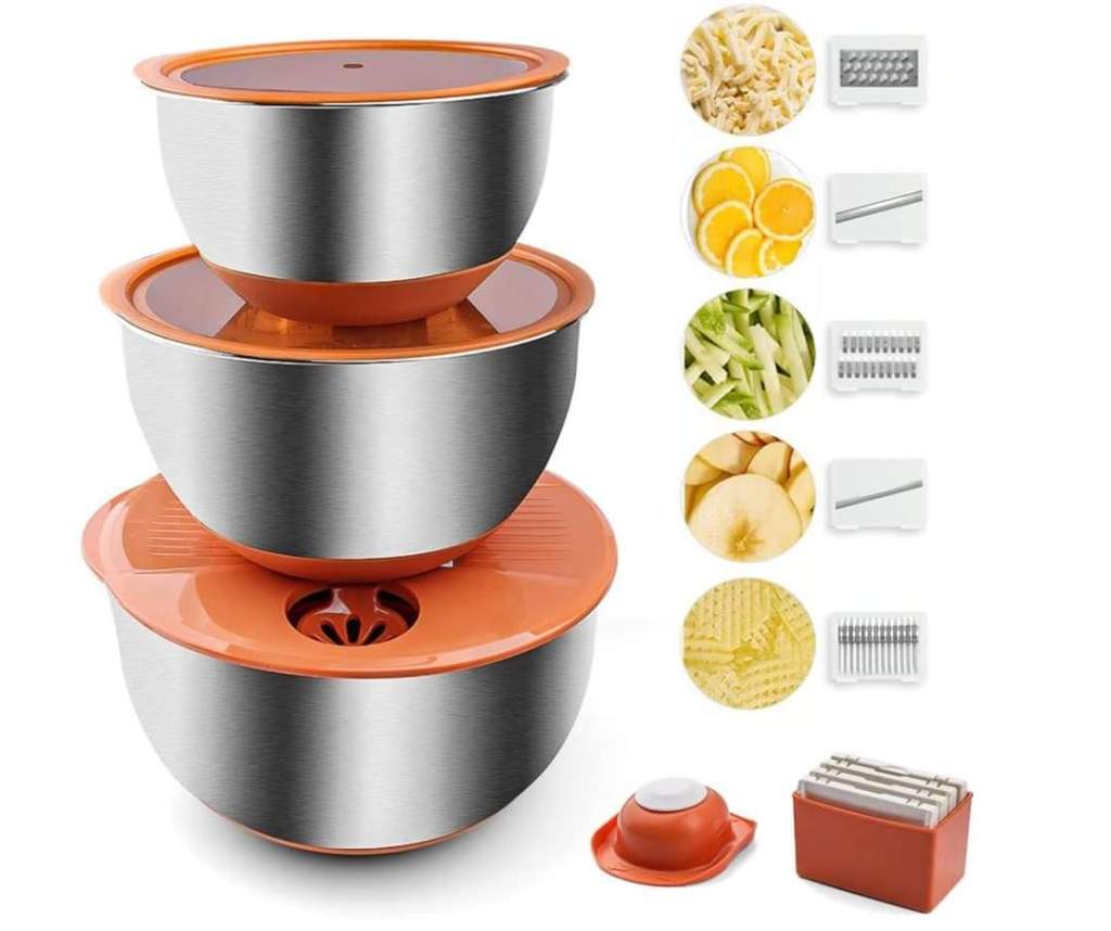 Mixing Bowls with Lids Set of 3, Stainless Steel Bowl Nesting Bowls with 5 pcs Grater Slicer Attachment, dr0ps 70% at checkout #ad