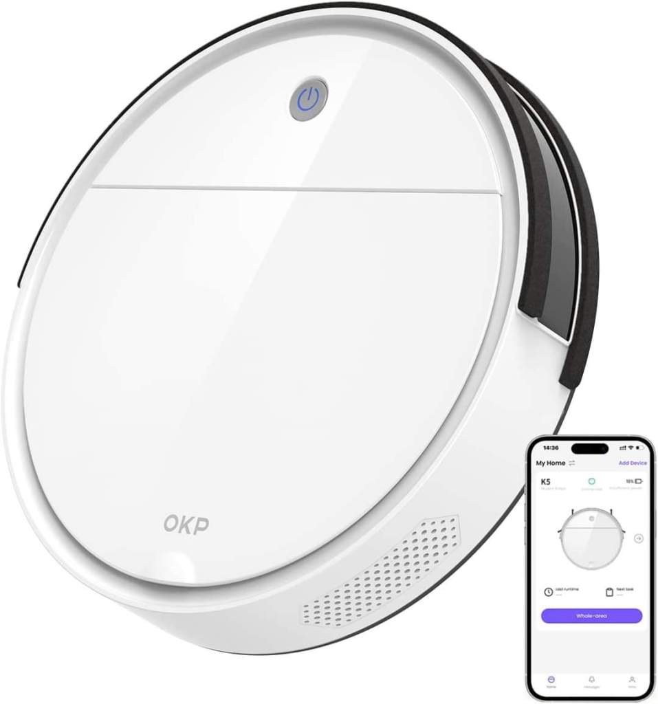 OKP K5 Robot Vacuum Cleaner, 120Mins Runtime, Compatible with Alexa/APP, 2100pa Strong Suction, Quiet and Small Robotic Vacuums is on pr!ce drōp + amazing coup0n to clip #ad