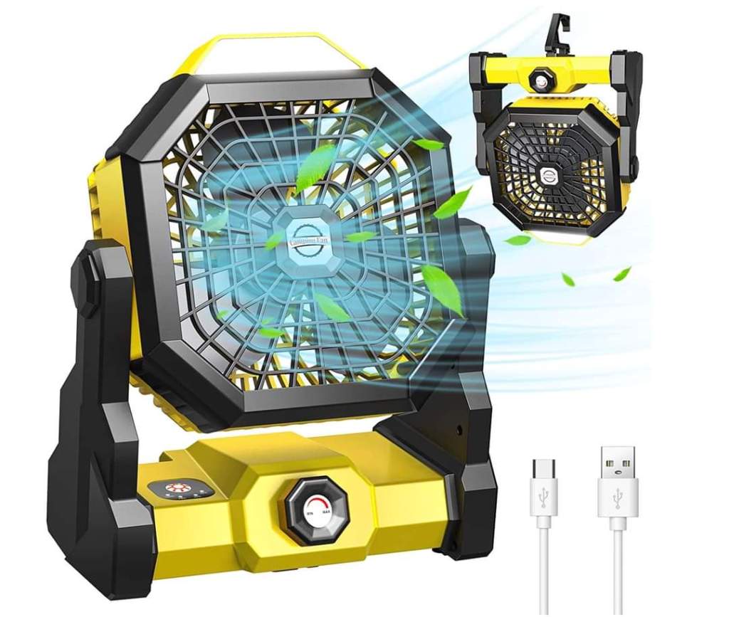 Camping Fan Rechargeable, Battery Powered Fan with LED Lantern, 270° Rotation, USB Battery Operated Tent Fan for Camping with Hook, #ad
