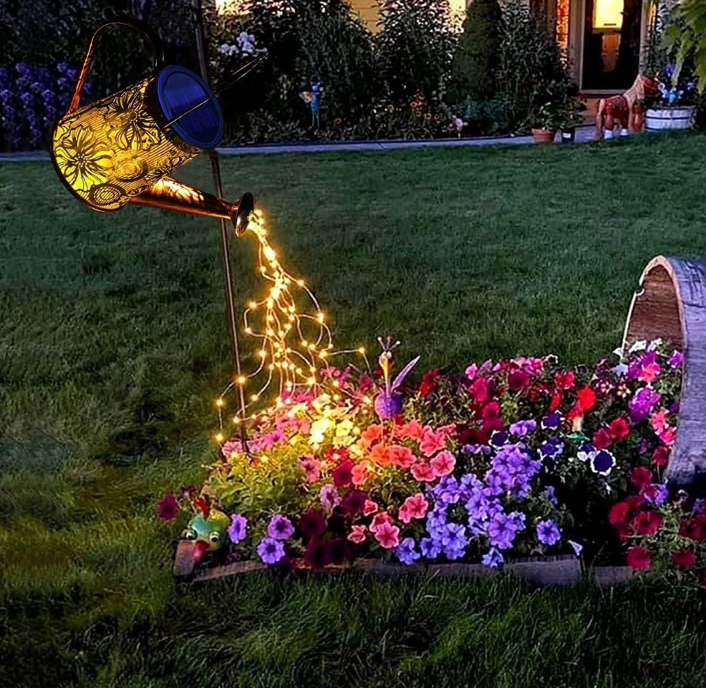 😍😍😍 This outdoor cutie is back! We love this gorgeous solar powered watering can. Now available in blue and green waterfall lights. You’ll save 50% at checkout, not the cart. #ad #rd04192023 please say if you snag. 👇👇👇