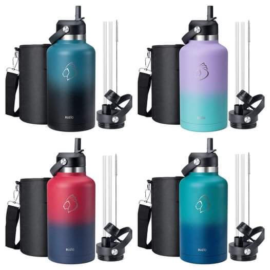 🔥65 % OFF!🔥🔥 CLIP COUPoñ + redeem qode at checkout on this BUZIO 64oz Insulated Water Bottle with Straw Spout Lid, Half Gallon Double Wall Vacuum Stainless Steel Food-Grade Water Jug with Carrying Sleeve, Wide Mouth Leak Proof Water Flask, #ad
