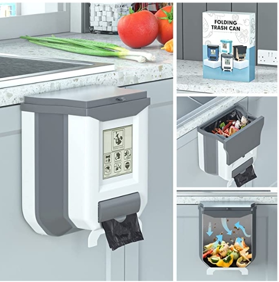 Kitchen Compost Bin,Trash Can with Lid,Collapsible Hanging Trash Can,2.4 Gallon Countertop Compost Bin for Cabinet/Bathroom/RV/Bedroom/Camping is on pr!ce dr0p #ad